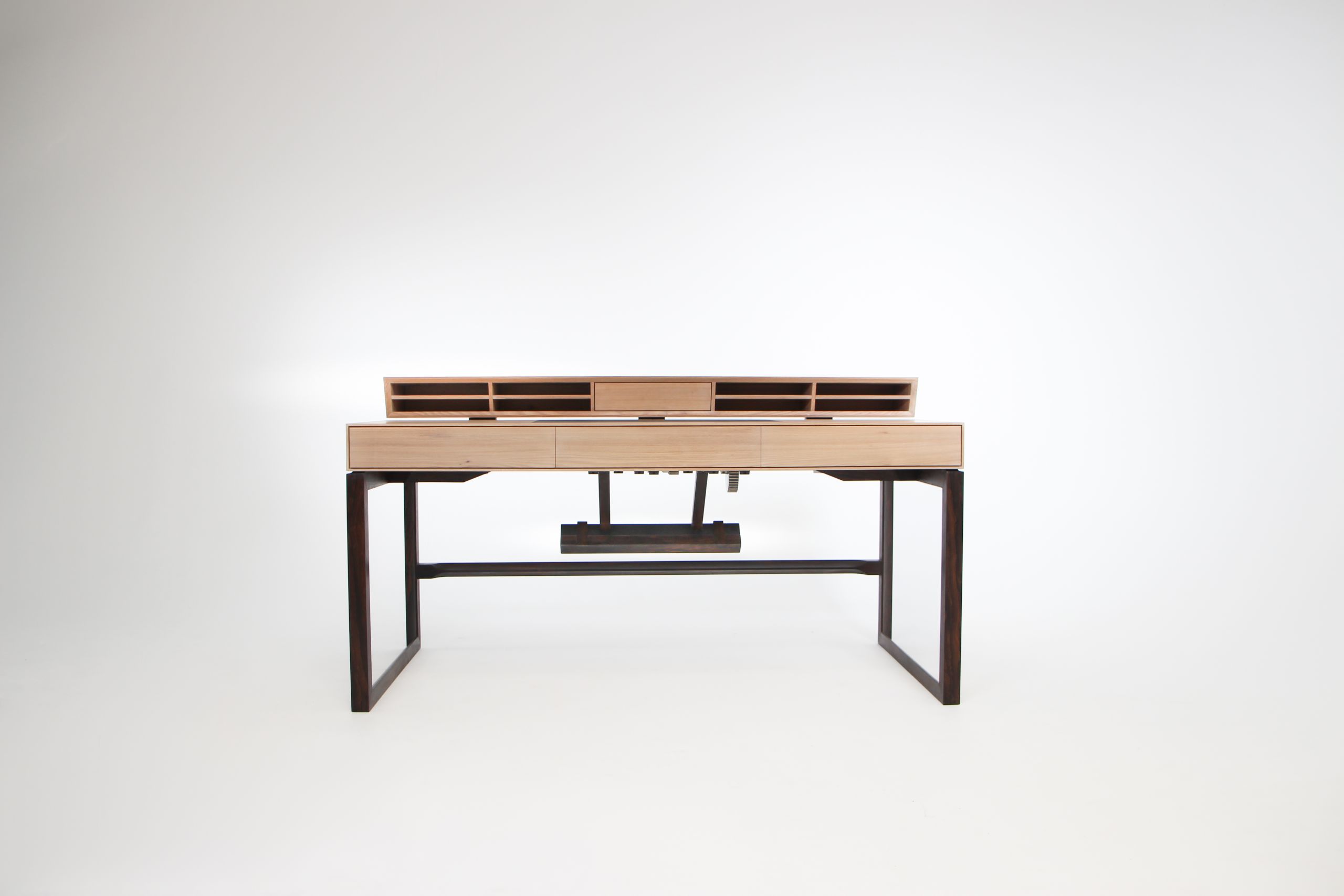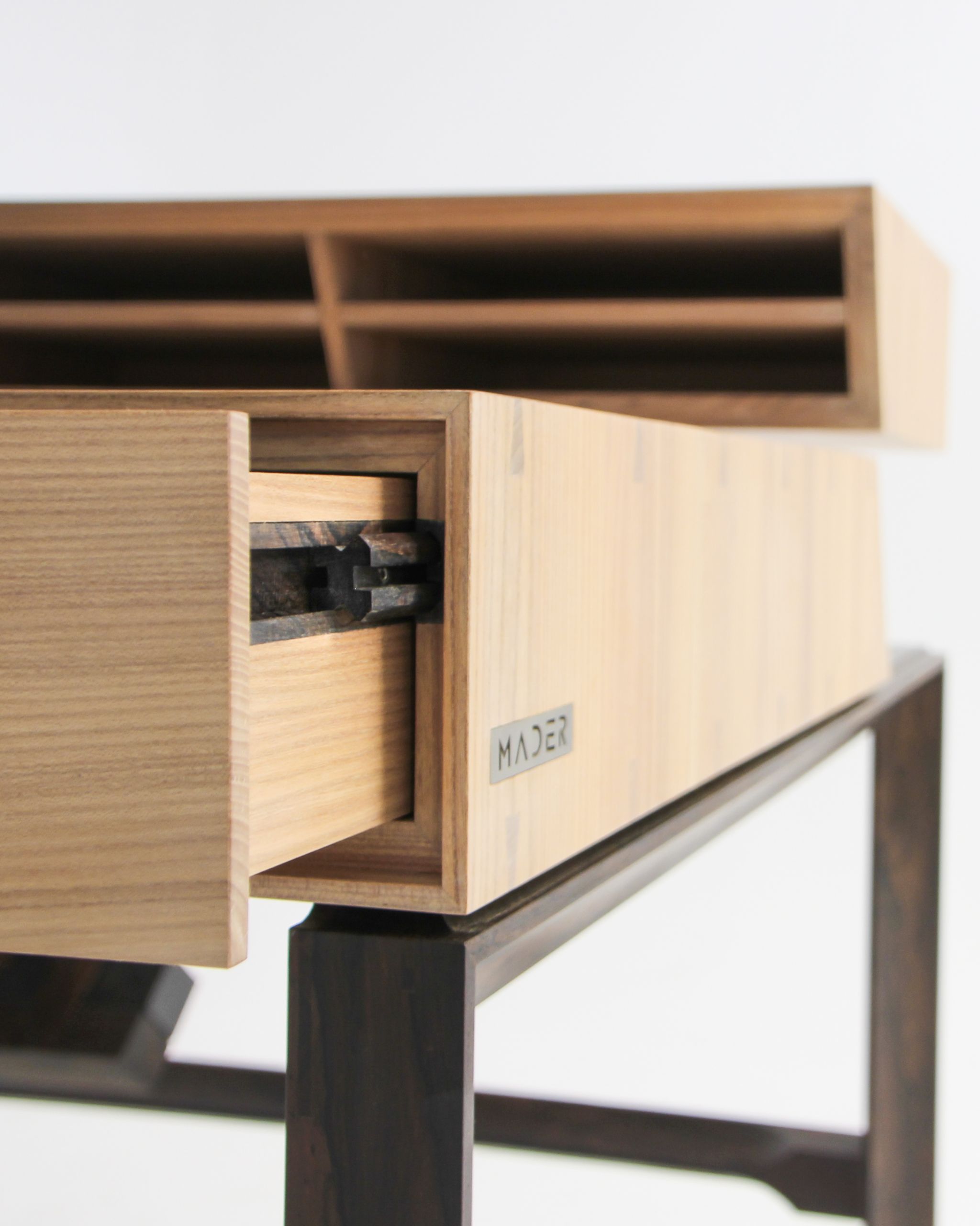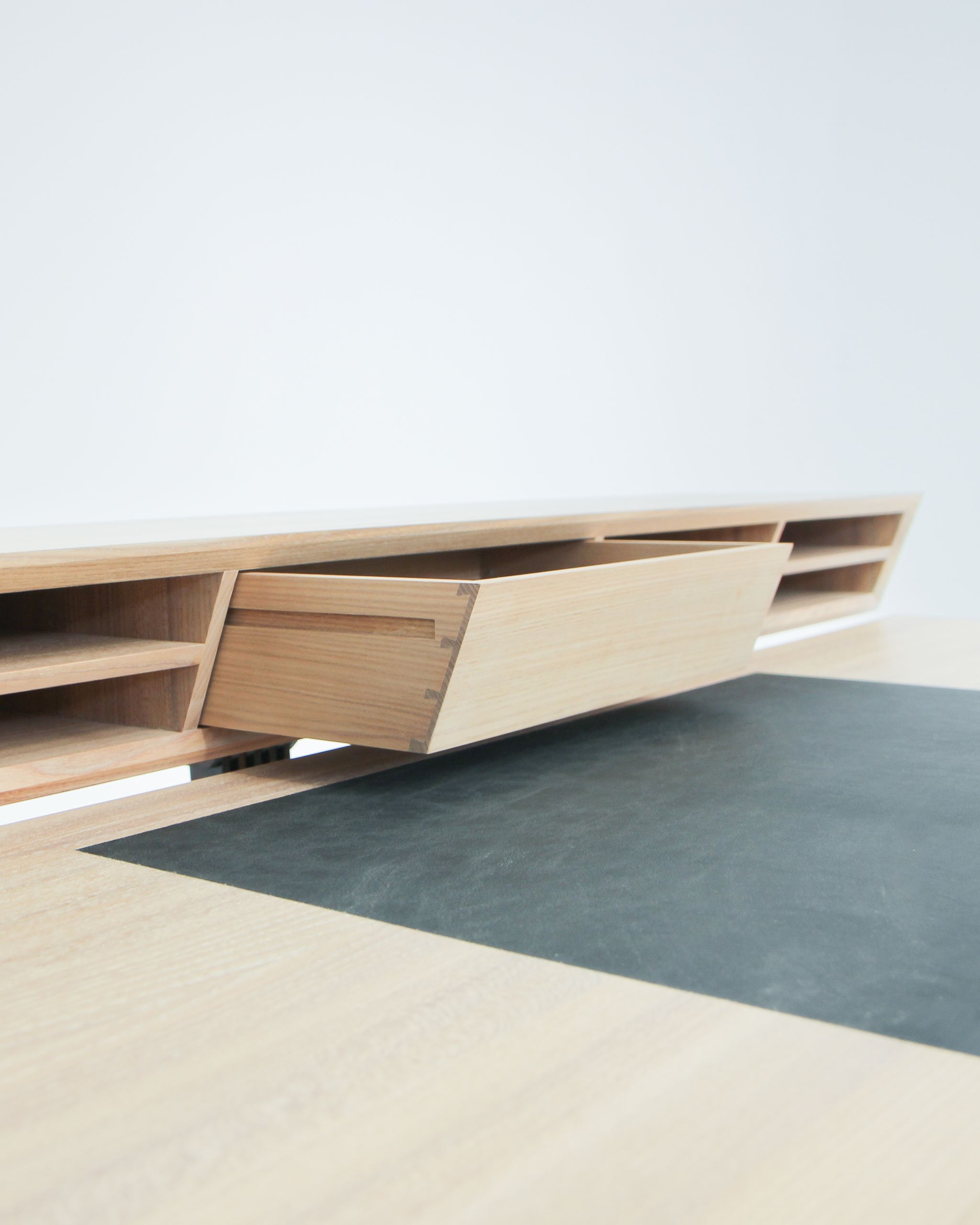 Overall, this custom wood desk thrives on simplicity, precision, and the strength of its clean lines an expression of traditional craftsmanship combined with modern innovation.