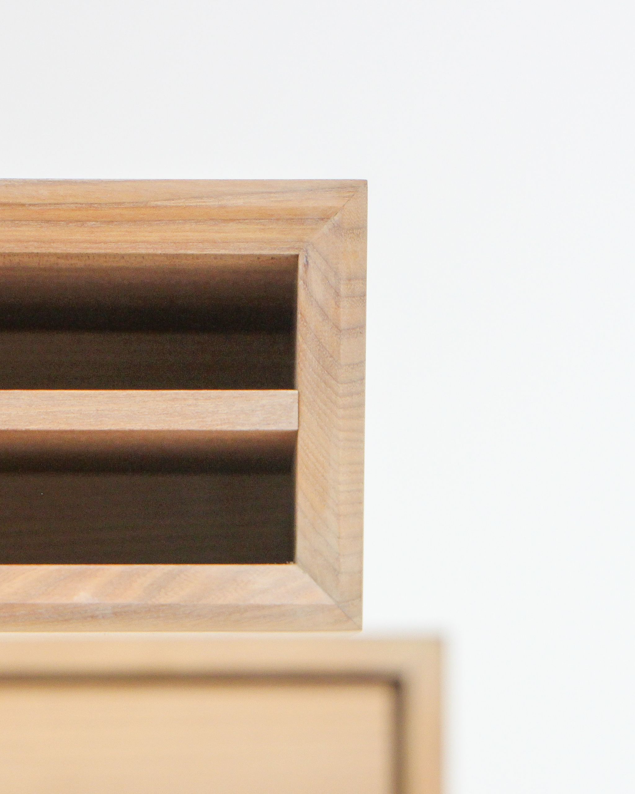 On closer inspection, fine craftsmanship becomes clear: complex corner joints of the corpus, fully hand-built wooden drawers with full extension, and precise joinery throughout. The surface is finished with natural oil, highlighting the honesty and beauty of solid wood.