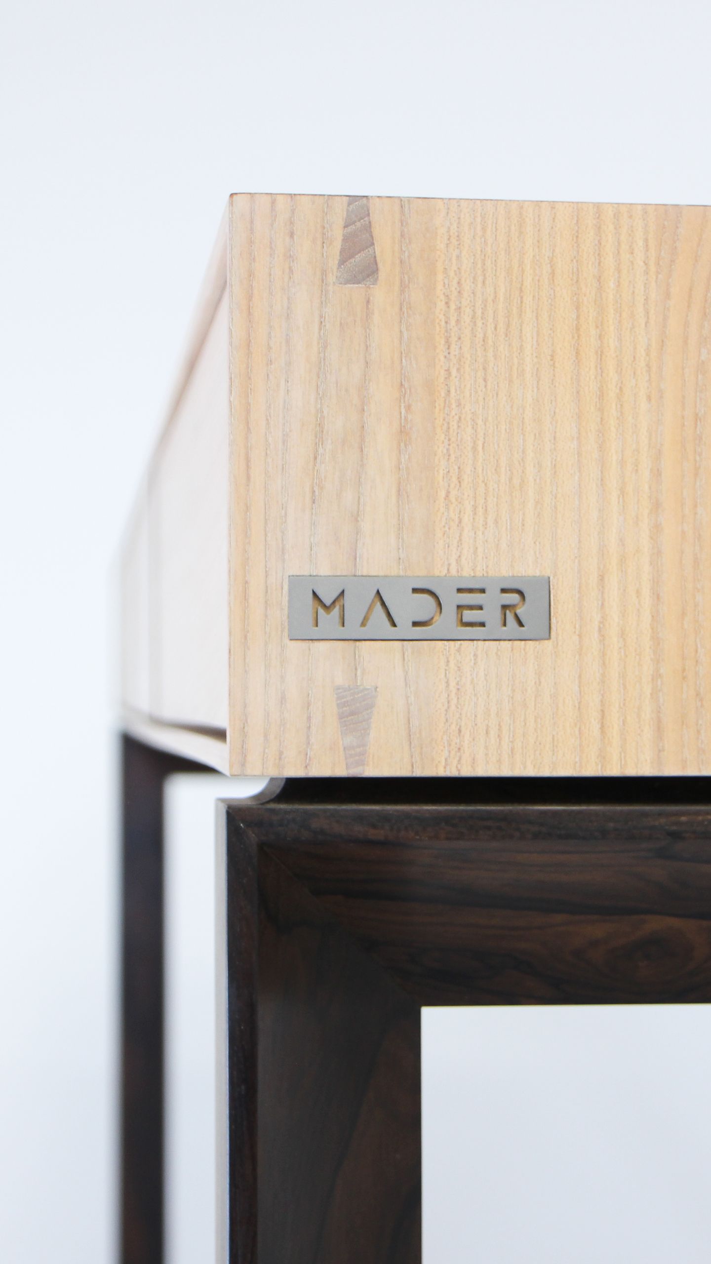In the end, not a single piece had to be remade. Every joint was crafted entirely by hand, without access to a CNC machine. This was also the first piece I proudly marked with the Mader logo. I still remember the exact moment: the desk was freshly oiled, fully assembled, and I took a chisel to embed my mark on the right side. It was one of the proudest moments of my life.
